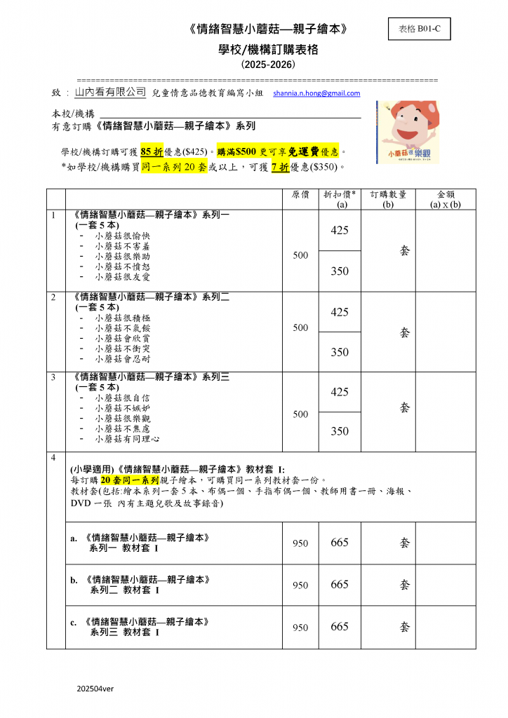 學校 / 機構: 親子版繪本訂購 [ 下載/Download ]